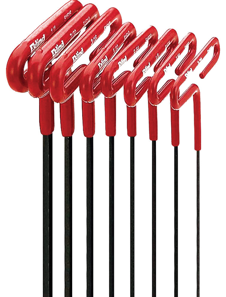 One piece loop handle for extra strength. Cushion grip has size marked on the handle & stamped on the throat of t he key. Made of 8650 chrome nickel alloy steel drawn to a tolerance of .000/minus .001. Hex corners are sharp & clean.• 8 piece• 6" arm• One piece loop handle for extra strength• Cushion grip has size marked on the handle & stamped on the throat of t he key• Made of 8650 chrome nickel alloy steel drawn to a tolerance of .000/minus .001• Hex corners are sharp & clean• Includes: 3/32", 7/64", 1/8", 9/64", 5/32", 3/16", 7/32" & 1/4".