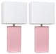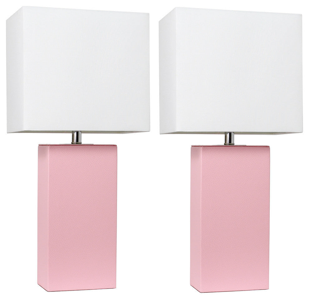 Elegant Designs 2 Pack Modern Leather Table Lamps with White Fabric Shades, Pink.