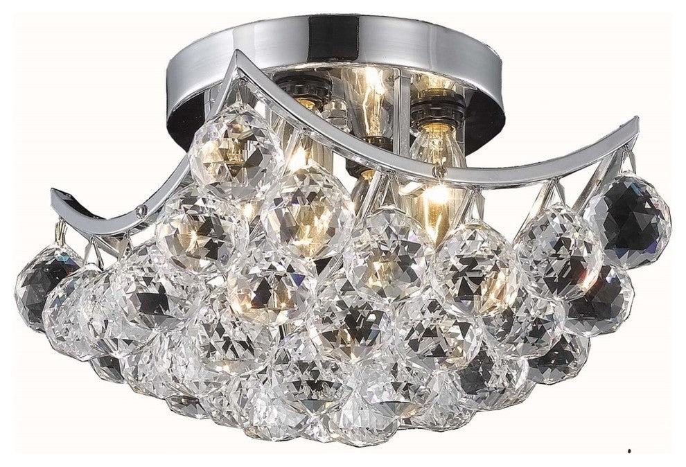 Bubbling ball crystals from the corona collection creates a sea of sparkling drops. Whether used in an entry hall, a dining room or in a powder room, Corona fills a space with drama and creativity.Features: • Finish: Chrome • Crystal Color: Crystal (Clear) • Style: Transitional • Crystal Trim: Royal Cut • Number of Lights: 4; Recommended Light Bulbs: 4 x E12 Bulb(s) • Includes a 10" chain wire • UL and Ulc Standard: YesSpecifications: • Overall Product Dimensions: 8" H x 10" W x 10" D • Overall Product Weight: 7 lbs • Bulb Wattage: 40 • Max Wattage: 160 • Voltage: 110V-125V