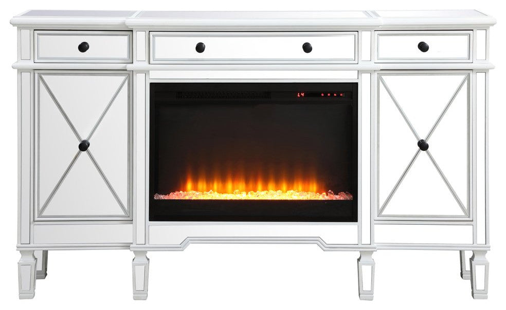 Contempo 60 in. mirrored credenza with crystal fireplace in antique white