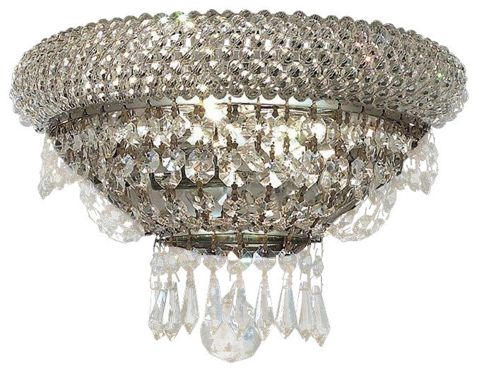 This classic, elegant Empire series is flowing with symmetry creating a dramatic explosion of brilliance. Primo is a dynamic collection of chandeliers that add decorative drama to any setting. Illumination- Bulb Type: E12- Number of bulbs (not included): 2- Max Wattage: 120Style- Finish: Chrome- Collection: Primo- Chain/Wire Included: 10"- Crystal Color: Clear- Crystal Trim: Royal CutAdditional Info- UL & Ulc rated- Voltage: 110V-125V