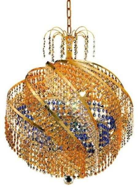 Elegant Spiral Dining Room Light, Gold Finish With Royal Cut Crystal