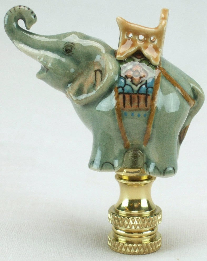 A new lamp finial is the perfect way to complete your new or favorite lamp. Quality finial that is sure to dress up your tired lamp. Finials have a standard 1/4"-27 thread, which will fit the harp on almost every lamp. (This means the opening is 1/4" wide and there are 27 threads per inch.) 95% of all lamp harps will fit this finial. Finial measures 2.5" Height and 1.25" width. Material:Ceramic finish.ELEPHANTCELADON SHAPE - 1.25" width Elephant " Celadon lamp finial. A perfect Elephant " Celadon to top off your table or floor lamp.CERAMIC FINISH - Ceramic finish will match most lamp harps.PERFECT SIZE - Proportional sized to fit most standard table or floor lamps. Finial measures 2.5" Height and 1.25" width. Threaded at 1/4" wide opening, threaded for standard 27 threads per inch.FUNCTIONAL - Secures your lampshade to standard table or floor lamp.EASY TO USE - Easily screws on/off. Fits standard lamp harps that measure 1/4" wide with 27 threads per inch.