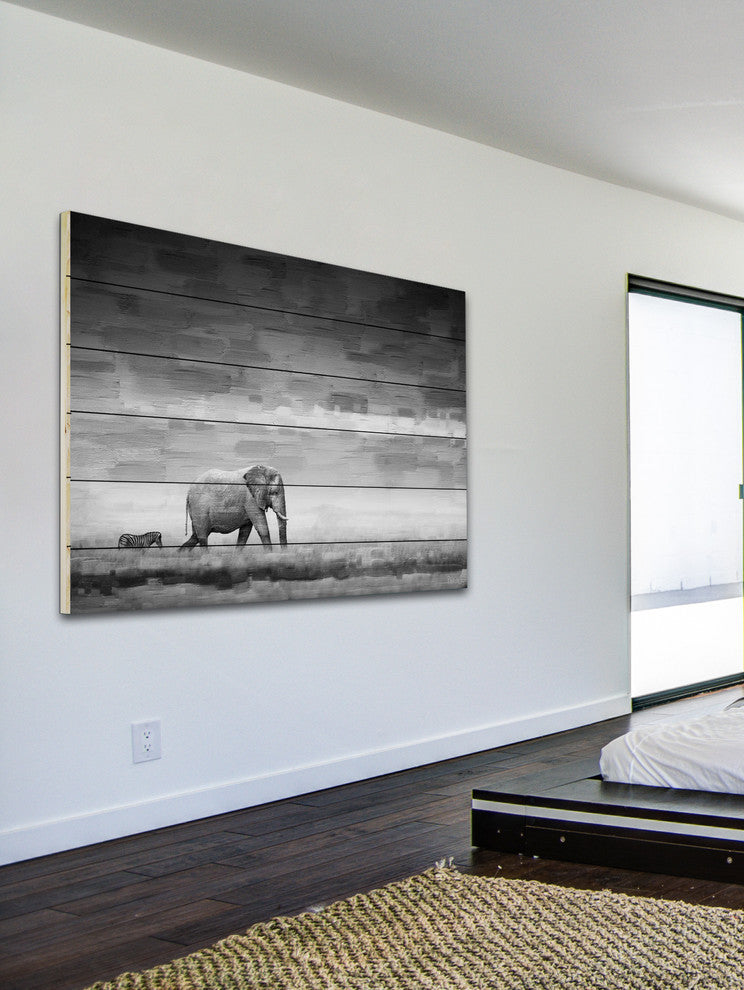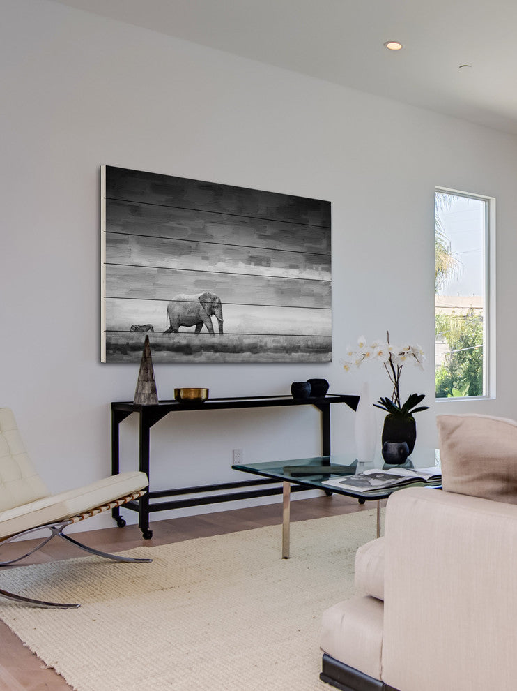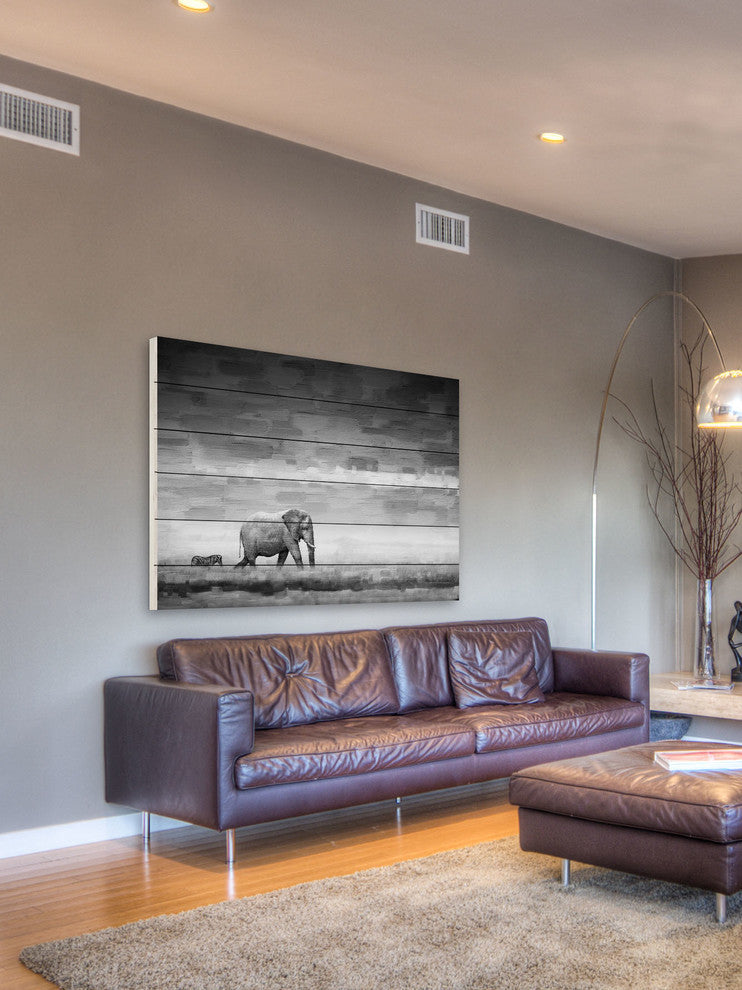 "Elephant" UV Ink Print on White Wood60"x40", 60"x40"
