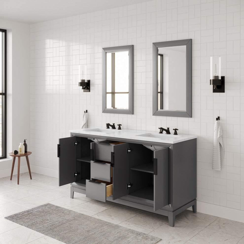 Elizabeth 60" Double Sink Carrara White Marble Vanity, Cashmere Gray