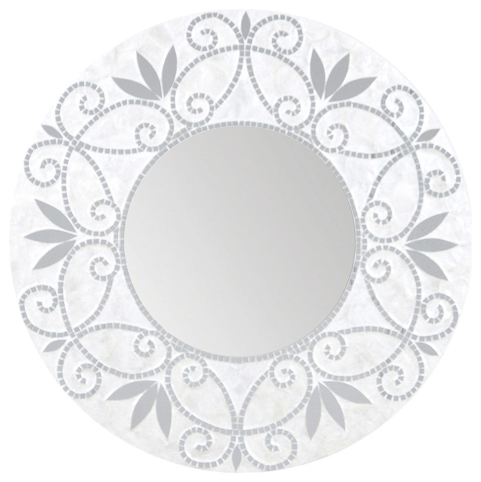 Additional Product Information: Collection: Surrey Item Finish: Silver, White Style: Luxe / Glam Length (inches): 1.00 Width (inches): 31.50 Height (inches): 32.00 Suitable For Outdoors?: No Item Weight (lbs): 11.00 Material: Mosaic, Wood Country: Indonesia