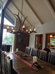 Real Antler Elk Single Tier Chandelier (58-62"D x 33-34"H), 12 Light Sockets, 6 feet of rustic bronze chain. With Parchment Shades.Handmade in North America using top quality naturally shed real antlers. Sockets are made to resemble real antler, each socket rated up to 60 Watts. Comes balanced and ready to hang. Frosted Bent Tip Candelabra Bulbs included. Certified in U.S & Canada (CSA listed to comply with UL 1598)