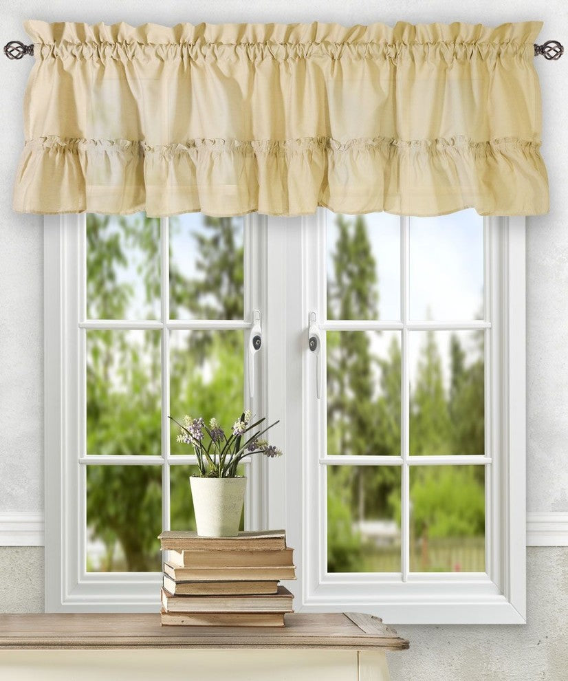 Ellis Curtain Stacey 54"x13" Ruffled Filler Valance, Almond