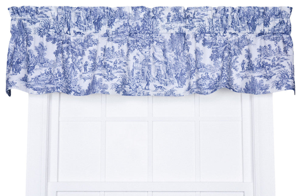 Ellis Curtain Victoria Park Toile 70"x15" Tailored Valance, Blue