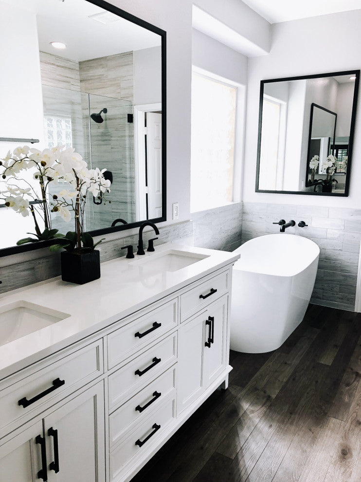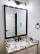 The thinnest framed mirror we have. At 1 1/4" wide and 3/4" thick, the Ellis collection is perfect for those smaller mirrors or where a minimalistic approach comes in to play. In a white, black, espresso textured, satin nickel, silver, gold, or brushed chrome finish, there is an option for everyone in the Ellis Framed Mirror collection.Hangrail for installation will be applied on the width of the frame. All assembly hardware and instructions will be included. Additional hangrails are included if the opposite orientation is desired for installation. The dimensions displayed are the final outside dimensions of the frame, including the mirror. CATII safety backing applied on all mirrors. Approved for high-moisture areas such as bathrooms.