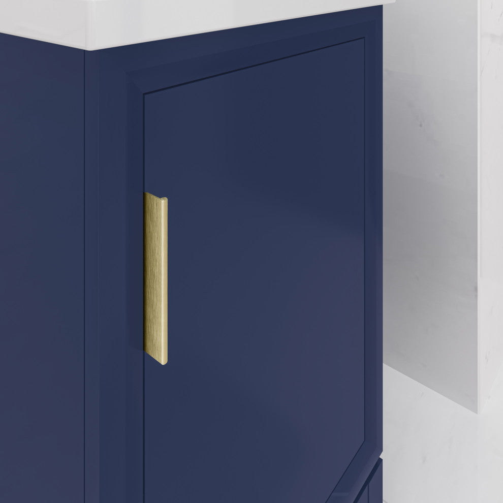 Brighten every nook and corner with Water Creationvanity! Elise collection bathroom vanity is the perfect addition in a level of subtle sophistication for small bath or powder room. Crafted of MDF in top-notch quality for exceptional strength and structural integrity, this small vanity is designed to build to the last. The cabinet is adorned with sleek brushed metal hardware which defines the clean, linear silhouette in every respect. Despite its exquisite size, practical and stylish elements include ample storage space behind the soft-close doors for your toiletries. The lustrous ceramic integrated sink vanity top in silky smooth surface prevents staining and make cleanup a breeze. Designing the speak itself, its lucid shaker styling is assured to appeal to a wide range of tastes for your bathroom renovation.