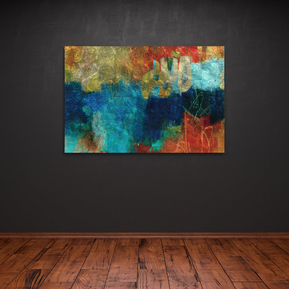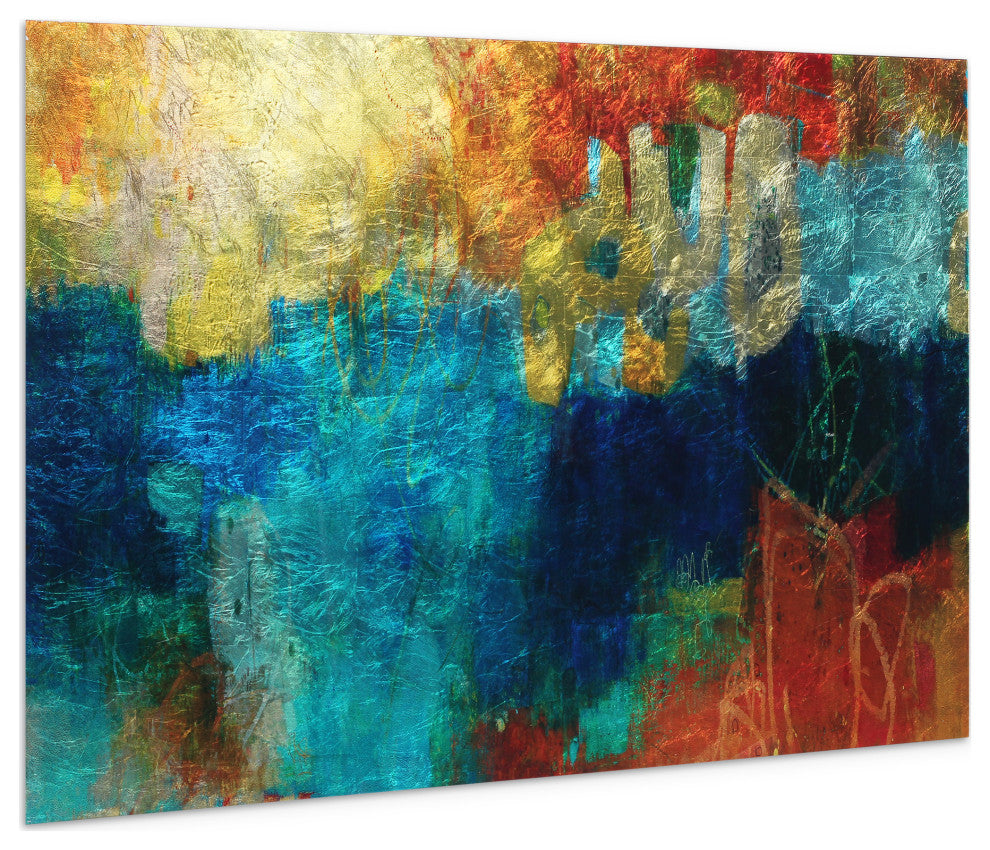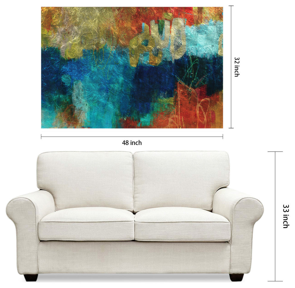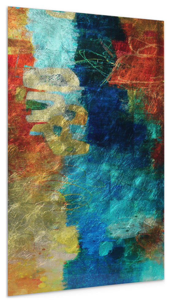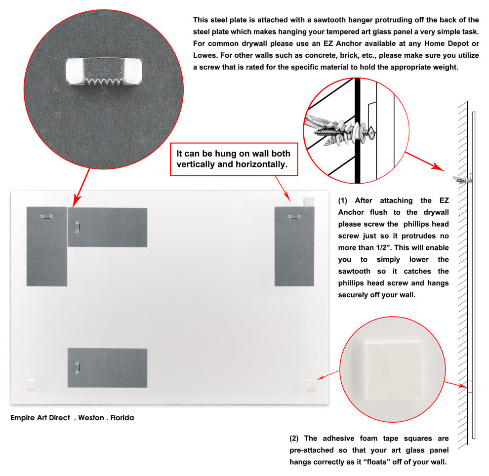 Empire Art brings to you a new collection of reverse printed, frameless, free floating tempered art glass, this time we''ve added silver squares in the background. By adding these 4" silver squares behind the artwork, the detail and elegance of this piece is enhanced while the quality of the piece remains incredible. This specific piece of abstract art displays many different shades of blue and orange. 4 strong steel hangers are attached to the back of the mirror for quick and easy installation either vertically or horizontally.