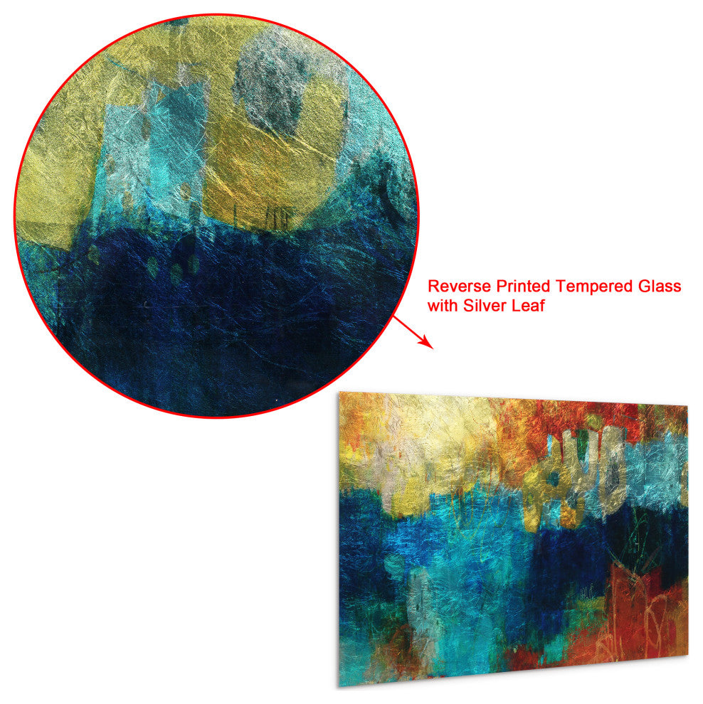 "Elysium V" Abstract Wall Art Reverse Printed Tempered Glass With Silver Leaf
