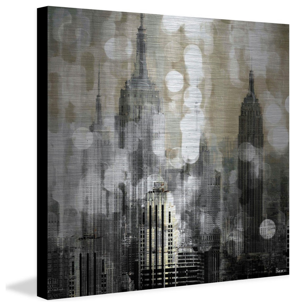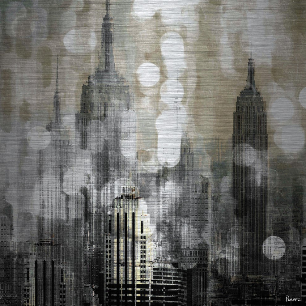 Striking and unique, the "Empire" Print on Brushed Aluminum by Parvez Taj will bring your walls to life. Printed on aluminum, this 40 inch wide by 40 inch tall contemporary artwork will make a statement in any living room, dining room, or bedroom.- Fine art UV ink print on brushed aluminum by Parvez Taj- The aluminum pops the colors and creates an iridescent shimmer, which gives depth to a room- Arrives ready to hang - Includes a certificate of authenticity- Artist signature on the front