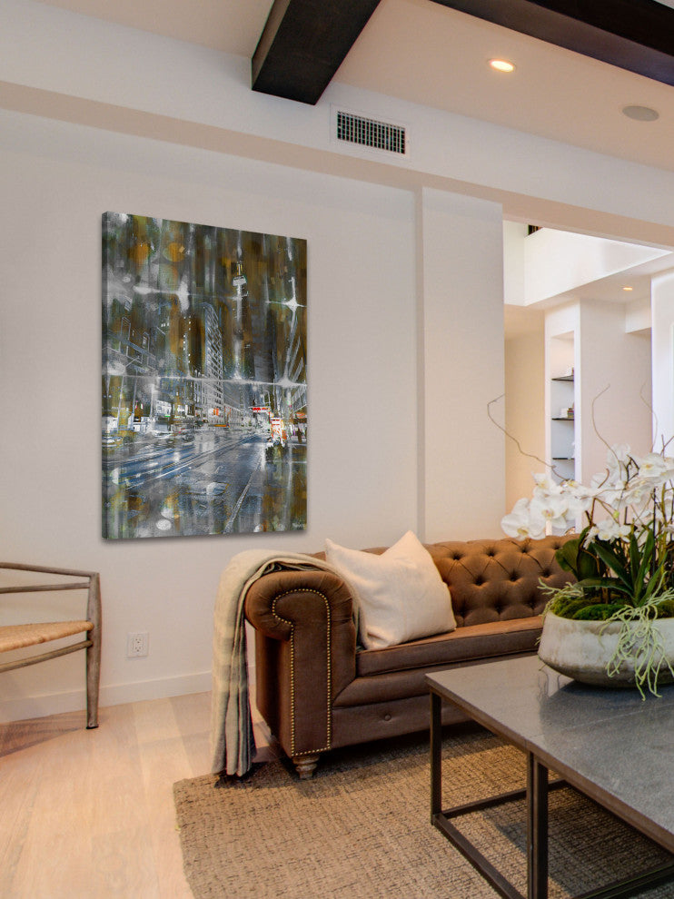 Striking and unique, the "End of the Street" Print on Canvas by Parvez Taj will bring your walls to life. Printed on canvas, this 24 inch wide by 36 inch tall contemporary artwork will make a statement in any living room, dining room, or bedroom.- Fine art canvas print by Parvez Taj- Professionally hand stretched- Gallery wrapped in sustainable, non-warping wood- Arrives ready to hang- Made in the USA- Includes a certificate of authenticity- Artist signature on the front