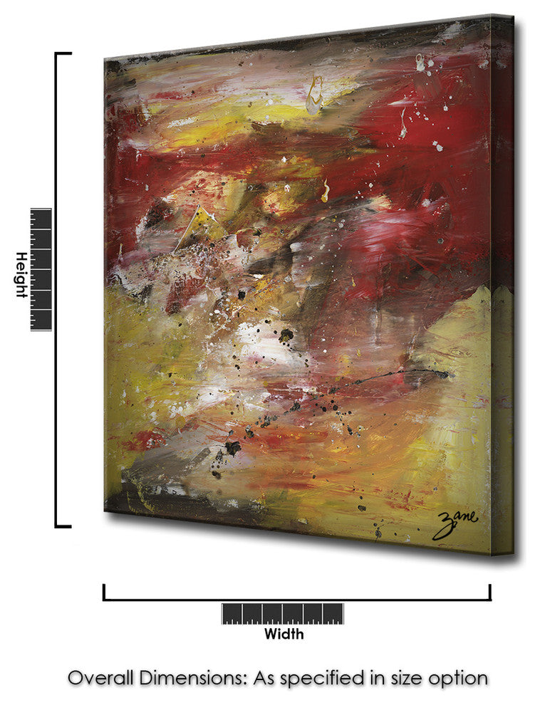 Salvatore Principe abstract ''Energy'' is a true abstract art piece. Oscillating colors layer, and blend eclectically forming a wild blur of crimson, gold and mud smears distinct and faded into each other. In the foreground white and black drips of paint coagulate atop the metallic backdrop. The wind blown strokes liberate the energy of each hue creating a confident, poignant, and overall bonkers canvas. Handcrafted in the United States, this gallery-wrapped canvas art arrives ready to hang on your wall.