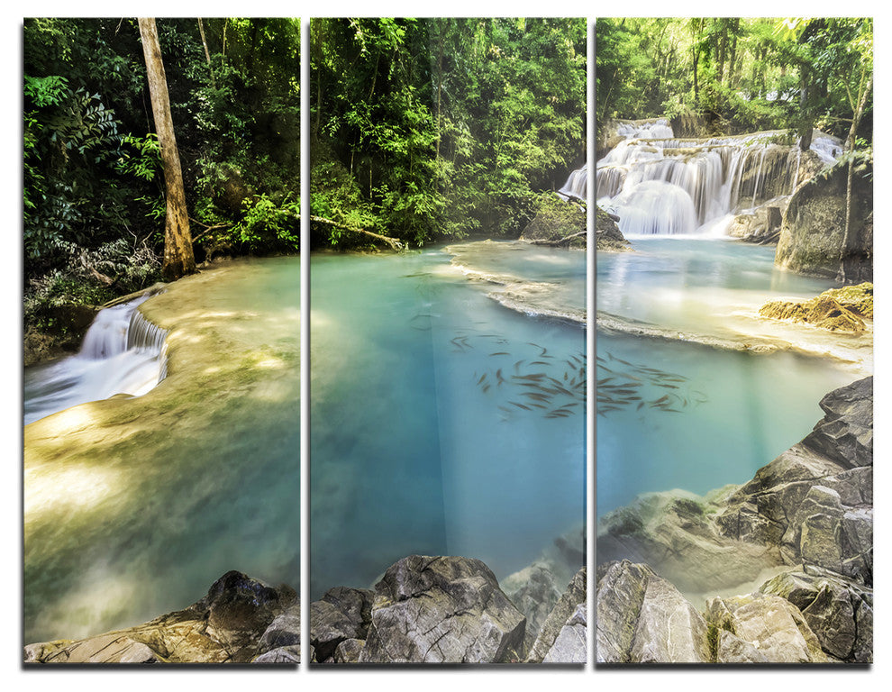 "Erawan Waterfall Top View" Glossy Metal Wall Art, 3 Panels, 36"x28"