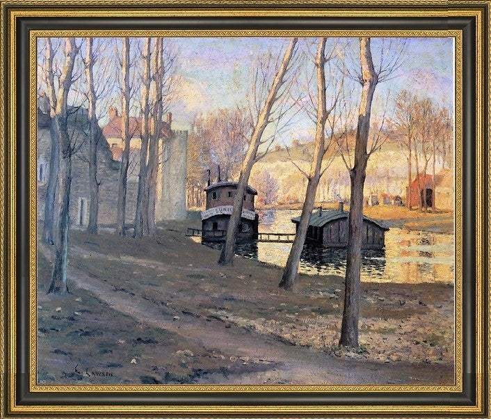 16" x 20" Ernest Lawson Moret-sur-Loing framed premium canvas print reproduced to meet museum quality standards. Our Museum quality canvas prints are produced using high-precision print technology for a more accurate reproduction printed on high quality canvas with fade-resistant, archival inks. Our progressive business model allows us to offer works of art to you at the best wholesale pricing, significantly less than art gallery prices, affordable to all. This artwork is hand stretched onto wooden stretcher bars, then mounted into our 3 3/4" wide gold finish frame with black panel by one of our expert framers. Our framed canvas print comes with hardware, ready to hang on your wall. We present a comprehensive collection of exceptional canvas art reproductions by Ernest Lawson.