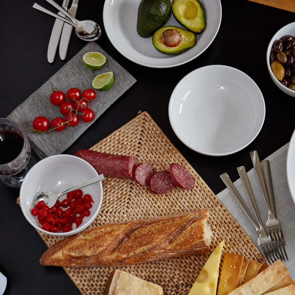Graceful, classic, casually refined: These are the defining elements of White Essential. White porcelain doesn''t have to lack for style and finesse, especially in dishes brought to you by Euro Ceramica, the company known for color and laying a joyful dinner table. The inverted rim of the set of four small serving bowls makes a distinct appearance on any table. With a functionality-focused design, these bowls are suitable for serving or dining. Fill them to the brim with colorful and flavorful food to lay an unforgettable table with ease. The set includes four 9" bowls. Pair with the White Essentials dinnerware set for a complete table spread, or accent with the matching Large Serving Bowl for a simple dine-and-serve experience. The White Essentials collection is oven-to-table, microwave safe, and dishwasher safe, made of durable true-white porcelain. As always, use caution when removing dishes from any appliance, as they may become warm, and never put a hot dish directly on a bare surface.
