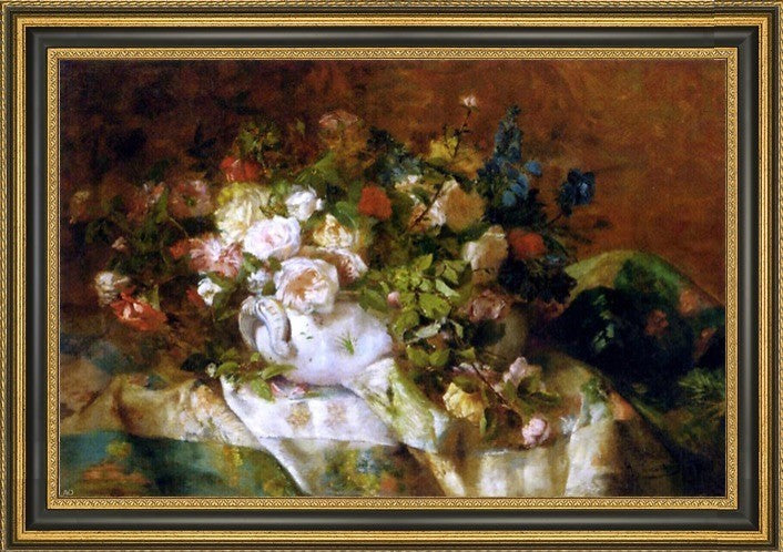 16" x 24" Eugene Henri Cauchois A Summer Bouquet framed premium canvas print reproduced to meet museum quality standards. Our Museum quality canvas prints are produced using high-precision print technology for a more accurate reproduction printed on high quality canvas with fade-resistant, archival inks. Our progressive business model allows us to offer works of art to you at the best wholesale pricing, significantly less than art gallery prices, affordable to all. This artwork is hand stretched onto wooden stretcher bars, then mounted into our 3 3/4" wide gold finish frame with black panel by one of our expert framers. Our framed canvas print comes with hardware, ready to hang on your wall. We present a comprehensive collection of exceptional canvas art reproductions by Eugene Henri Cauchois.