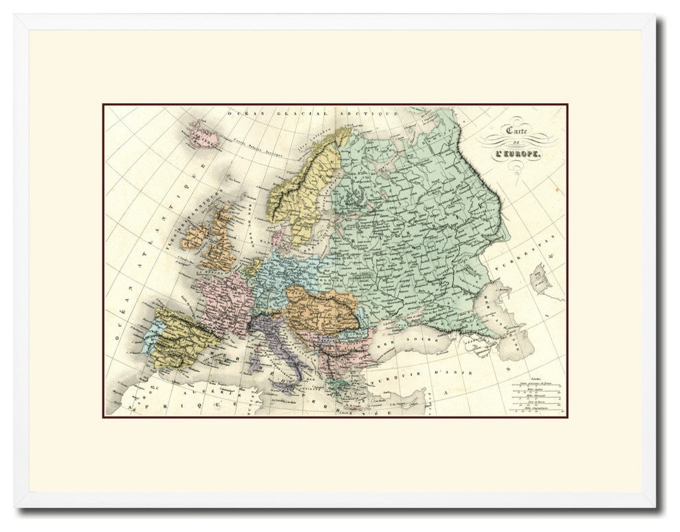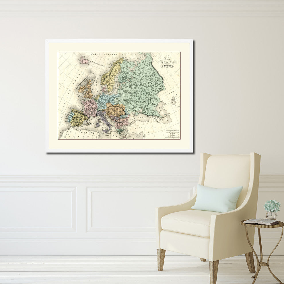 Europe Old Map Print On Canvas With Picture Frame Art Collection 16" X 21"