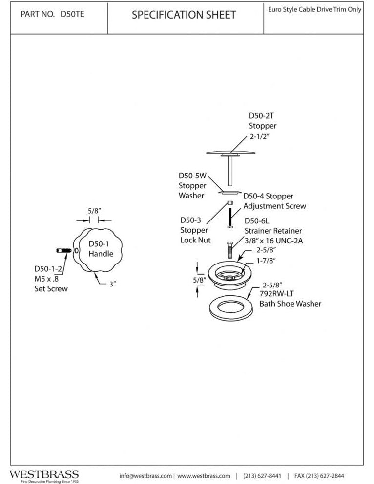 This European oversized drain trim kits fits all Westbrass cable driven bath waste and overflows. Rotate the round overflow cover to close the drain. Turn it in the opposite direction to open the drain. The screw on the adjustable plunger base allows proper flow adjustment, for the tub drainage. Available in a variety of finishes, to fit any decor.