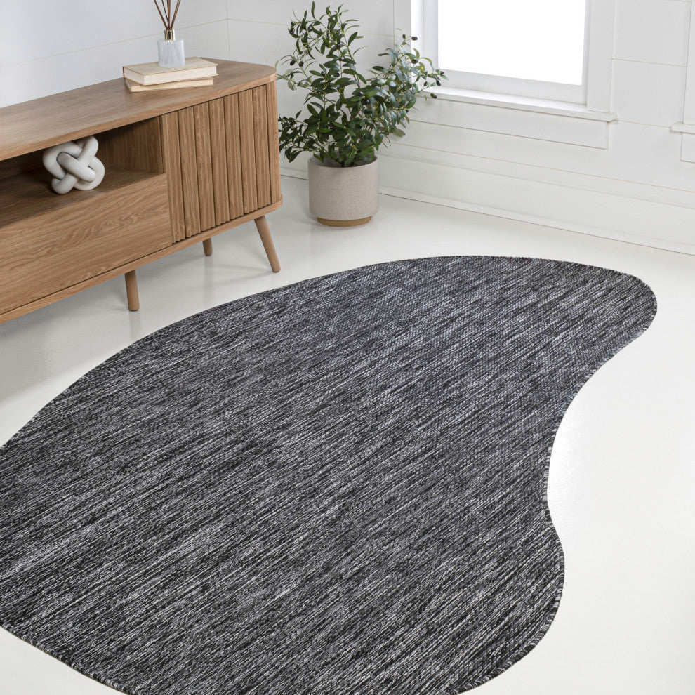 This modern outdoor rug combines an abstract shape with soft colors. Woven from synthetic fibers, this easy-care rug is both rustic and refined. Use it outdoors on a porch, or in the living room, entry, bedroom or dining room.Features:• Transitional flat-woven design is just 0.15" thick• Woven black and dark gray fibers have a minimalist vibe• Durable woven construction is made from easy-care outdoor polypropylene• 100% Polypropylene• No backing, use of rug pad is recommended (sold separately)• Power Loomed in T�rkiye• Actual Dimension: 5 ft. 3 in. x 7 ft. 7 in.• Color: Dark Gray• Thickness measures: 0.15 in.• Available in multiple sizes and/or colorsRug Care:• Vacuum regularly and spot clean as needed; avoid direct and continuous exposure to sunlight; use brushless vacuum; remove spills immediately; if liquid, blot with clean, undyed cloth by pressing firmly around the spill to absorb as much as possible; for hard to remove stains, professional rug cleaning is recommended; store in a dry, well ventilated area and rotate for consistent wear• Packing and shipping may cause temporary creases in rugs, which will flatten out after a week on the floor; to expedite the process, try back-rolling your rug before laying it down, and then allow ample time for the remaining creases to relax• Please Note: Due to differences in monitors, some rug colors may vary slightly. Lengths and widths may vary from the published dimensions. Patterns may vary slightly according to shape and size selected.About us:Style your floors with JONATHAN Y. By combining fine craftsmanship and design, this New York creative studio is bringing fashion to your floors. The collection mixes sustainable organic materials, vibrant colors and trend worthy styles to create JONATHAN Y''s distinctive catalog of rugs.