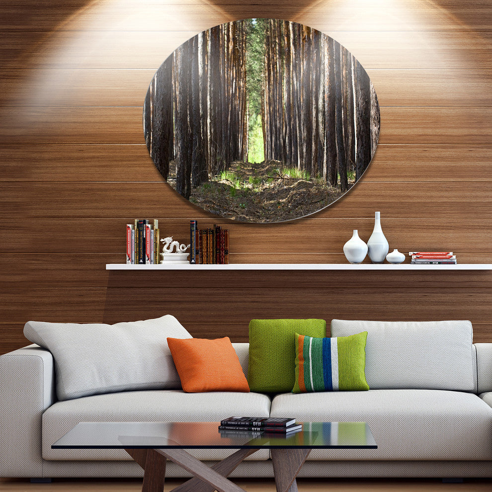 Bring Contemporary Abstraction to your home with this large Circle Metal wall art. This Even Rows of Pine Tree Forest Metal Artwork makes it the focal point of any room or office.