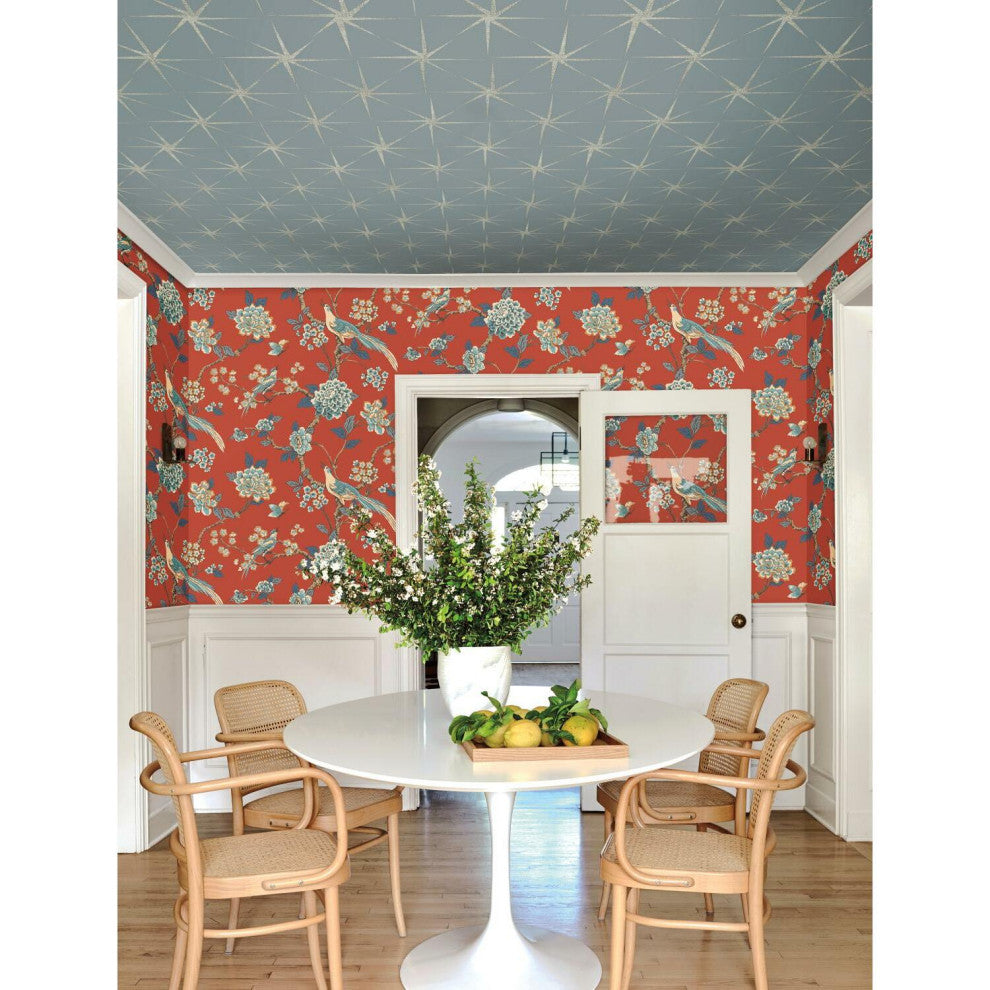 Timeless motifs combine with sophisticated color to create the playful, casual pattern mix of heritage and modern found in Grandmillennial. Manufactured on Sure Strip�, a unique high performance substrate, this ultra-easy removable wallpaper is guaranteed easy to install and easy to remove; simply use water to activate. Shimmering pattern Evening Star is a blend of mid-century metallic and warm, cottage charm. Includes 1 roll - 27 in x 27 ft = 60.75 sq ft with a drop match and 25.25 in repeat.