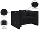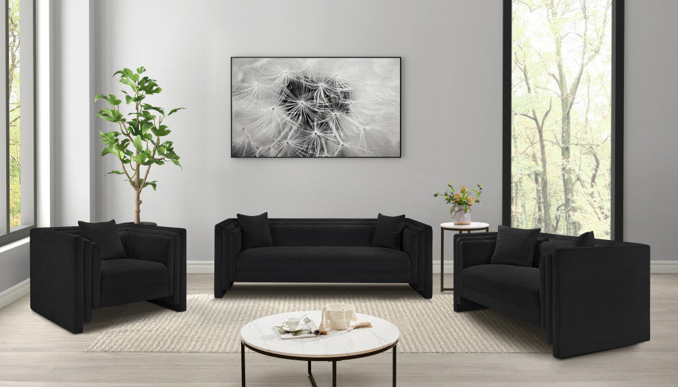 Make this Everett black chenille fabric chair the center of a cozy reading nook. Handsome from every angle, this posh chair is plumply appointed to put supreme comfort within easy reach. Soft black chenille upholstery fabric adds to its lavish feel while a staggered design gives it a modern edge. An included pillow gives it a beckoning vibe while the chair''s solid wood inner frame makes it a lasting addition in any room.Overall Product Dimensions: 45" W x 34" D x 29" HSoft Black Chenille FabricSolid Wood Inner FramePillows IncludedContemporary DesignSeat Dimensions: 26" W x 24" D x 19" HArm Height: 30"Back Height: 30"