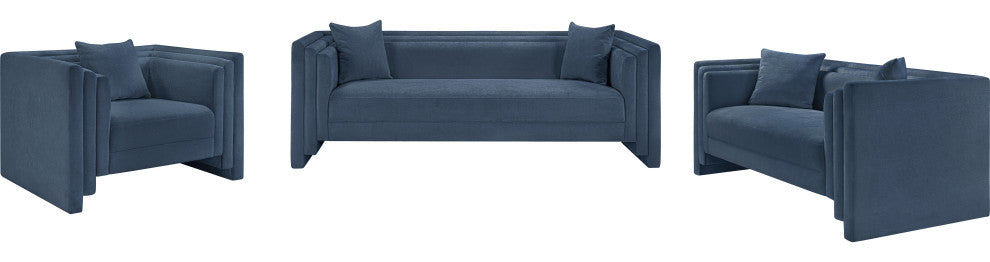 Make this Everett light blue chenille fabric chair the center of a cozy reading nook. Handsome from every angle, this posh chair is plumply appointed to put supreme comfort within easy reach. Soft light blue chenille upholstery fabric adds to its lavish feel while a staggered design gives it a modern edge. An included pillow gives it a beckoning vibe while the chair''s solid wood inner frame makes it a lasting addition in any room.Overall Product Dimensions: 45" W x 34" D x 29" HSoft Light Blue Chenille FabricSolid Wood Inner FramePillows IncludedContemporary DesignSeat Dimensions: 26" W x 24" D x 19" HArm Height: 30"Back Height: 30"