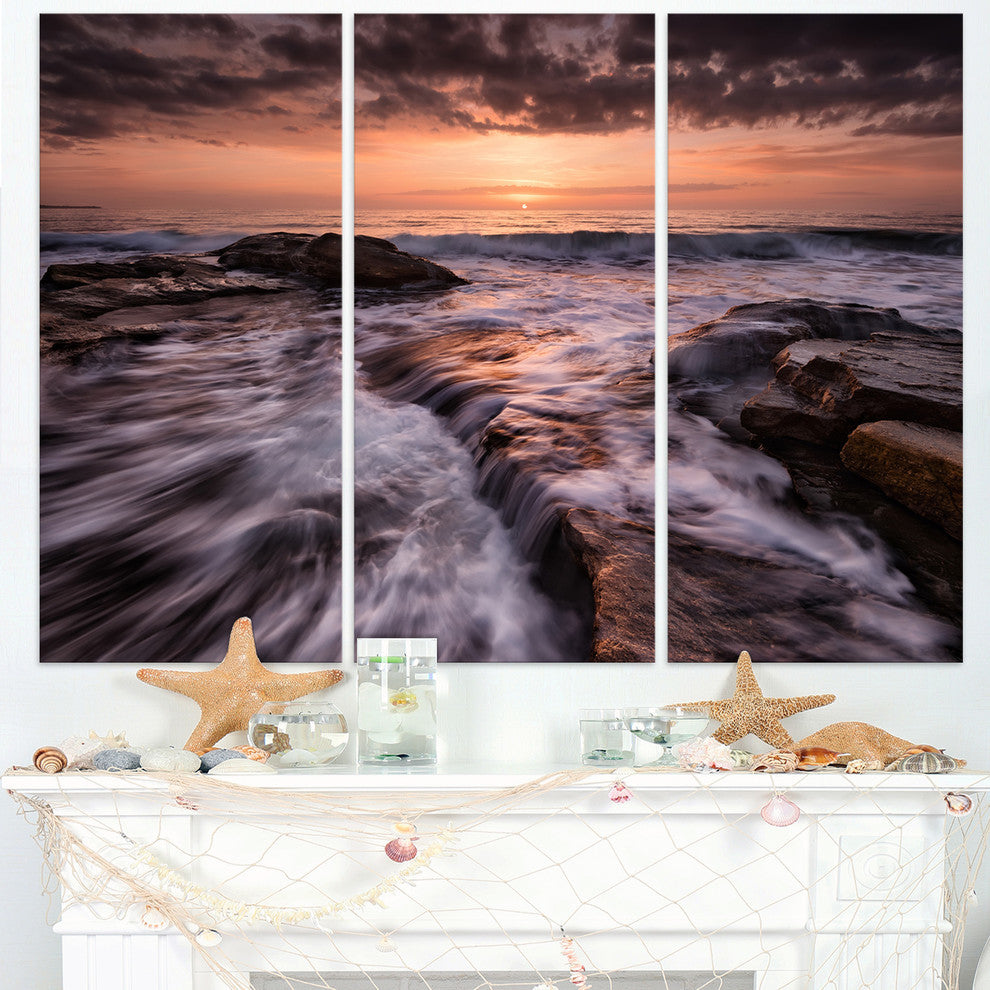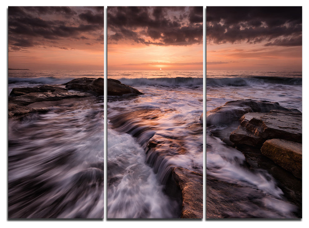"Exotic Flow of Waters Over Rocks" Metal Wall Art, 3 Panels, 36"x28"