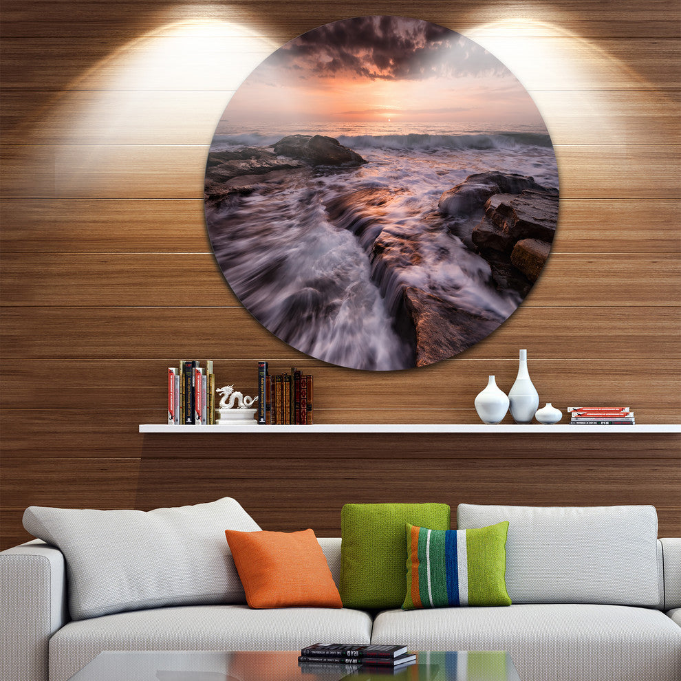 Exotic Flow Of Waters Over Rocks, Seascape Disc Metal Wall Art, 23"