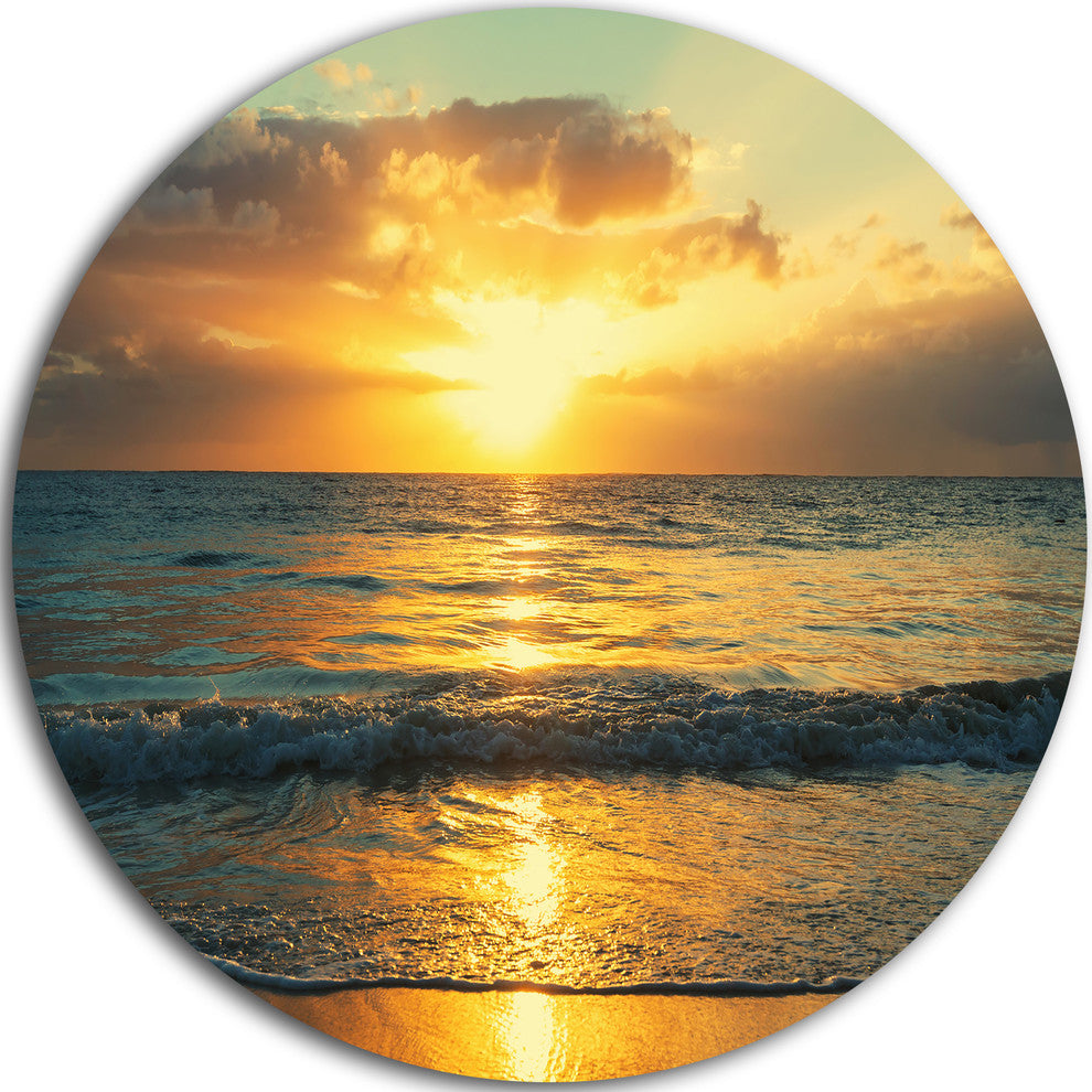 Exotic Water And Sky Sunset Panorama, Seashore Round Metal Artwork, 23"