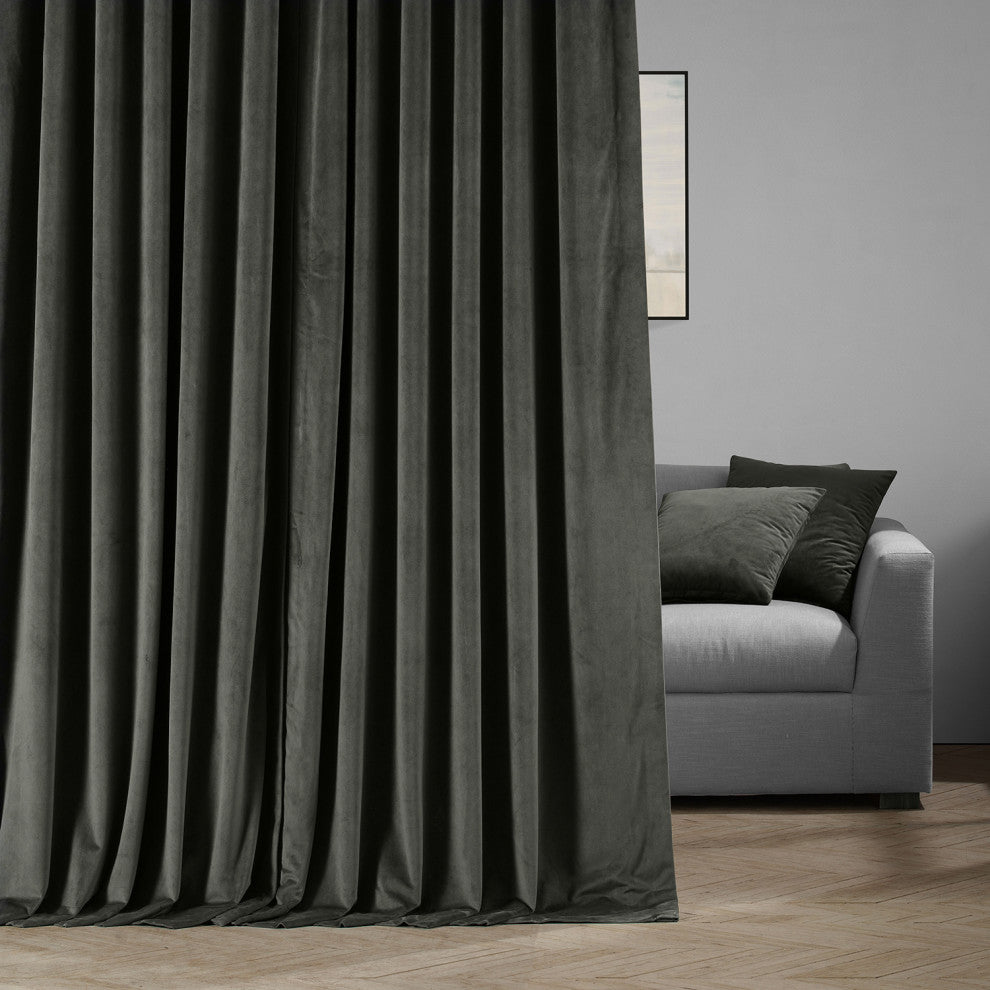 Extra Wide Blackout Velvet Curtain Single Panel, Gunmetal Gray, 100"x96"