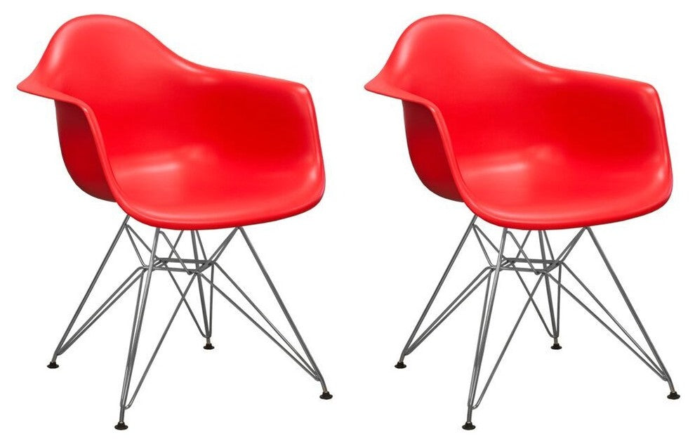 EZ Mod 2 Eiffel Molded Chrome Arm chairs, Red