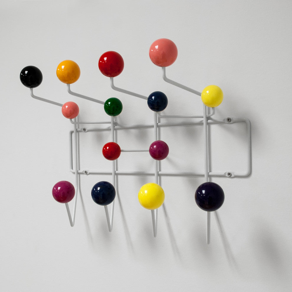 Add a bright splash of pop color and wall art to your front hall, foyer, or any room in your house or office. Made of white metal and multi-color wood balls, this pop color hanging rack holds jackets, scarves, skates, knapsacks, jump rope, etc. More than just a conversation piece, the Hang-It-All holds anything that slips over its colorful hooks. With colourful hooks and playful design, Hang It All is a piece of art in its right. It''s wall-mountable (fixing included), and is your chance to enjoy a piece of design history as well as a highly functional wall mount coat rack. Hang it anywhere, and watch faces light up as family and friends hang it all! Note: color arrangement of balls may not be same as picture shown. - 19" Length