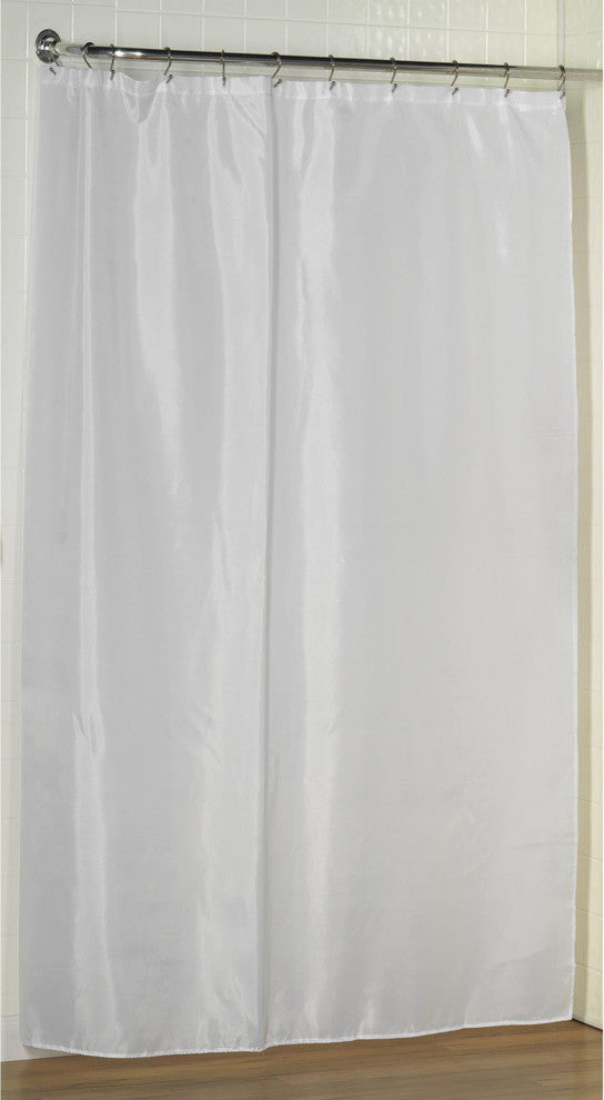 This extra long shower curtain is perfect for customers who need an extra 12" in the length. If your rod is hung higher than normal and water is getting all over the bathroom floor, then this solid fabric shower curtain is the solution. It can be used as a liner or as the only shower curtain