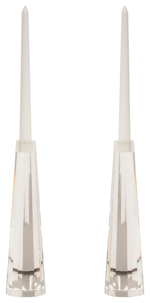 Give your room an intimate ambiance with the Facet Cone Candleholders. Arrange this set of two candleholders on a mantle or in your entryway for a unique display. Each piece measures 3 by 10.5 inches and is made of crystal.