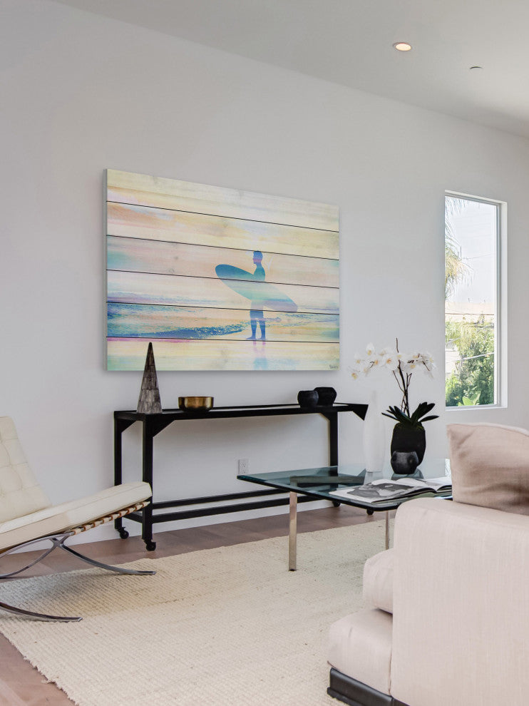 Striking and unique, the "Faded Surf" Print on White Wood by Parvez Taj will bring your walls to life. Printed on white wood, this 36 inch wide by 24 inch tall contemporary artwork will make a statement in any living room, dining room, or bedroom.- Fine art UV ink print on white wood by Parvez Taj- wood pieces are hand-selected by Fine craftsmen for printing- Arrives ready to hang- Includes a certificate of authenticity- Artist signature on the front