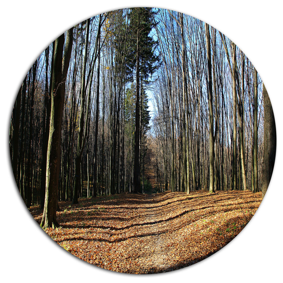 Fall Forest In Sunlight And Shadows, Forest Disc Metal Artwork, 23"