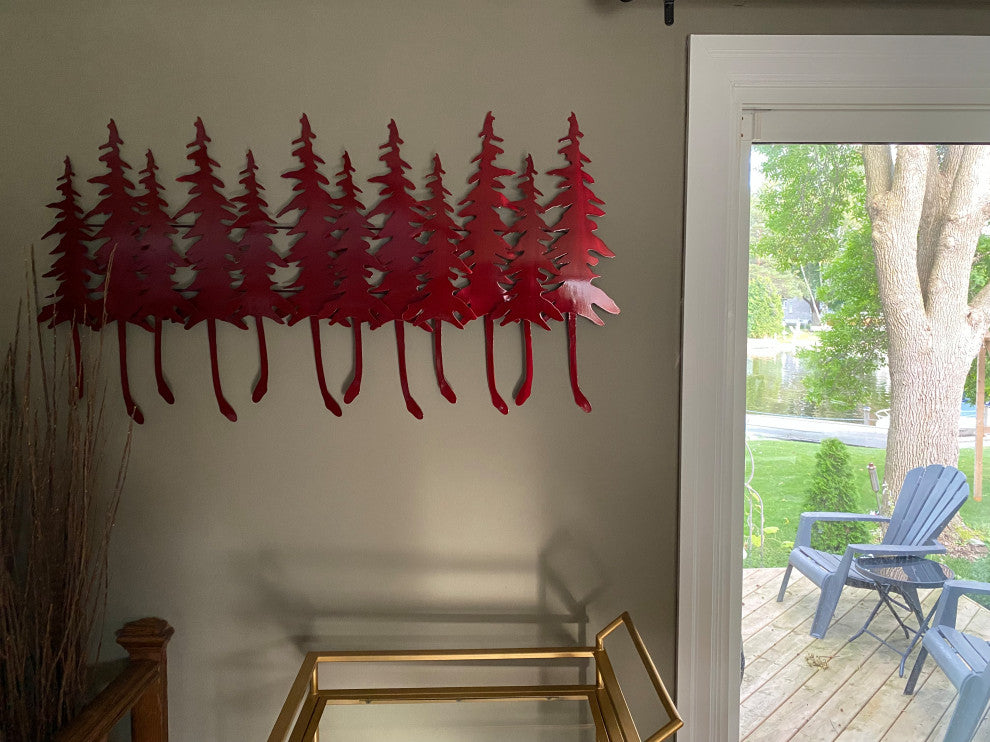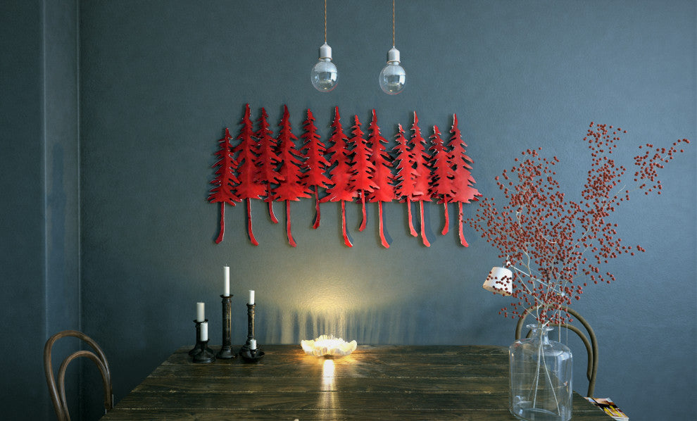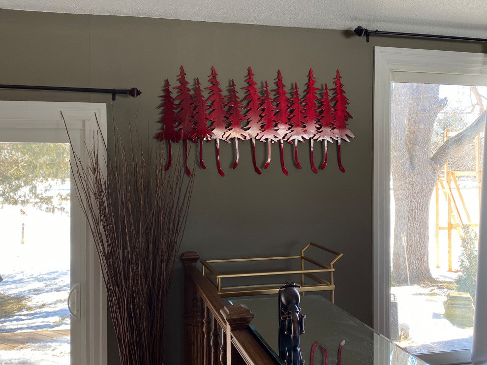 Fall Forest Wall Mountable Original Artwork100% handcrafted, rich metals with each piece receiving hand finished treatments. Each unique artwork provides a different style in each individual home, office, or business. Multi-dimensional metal wall art in flamed steel and color tinted, metal wall art, 51" x 28" x 3"