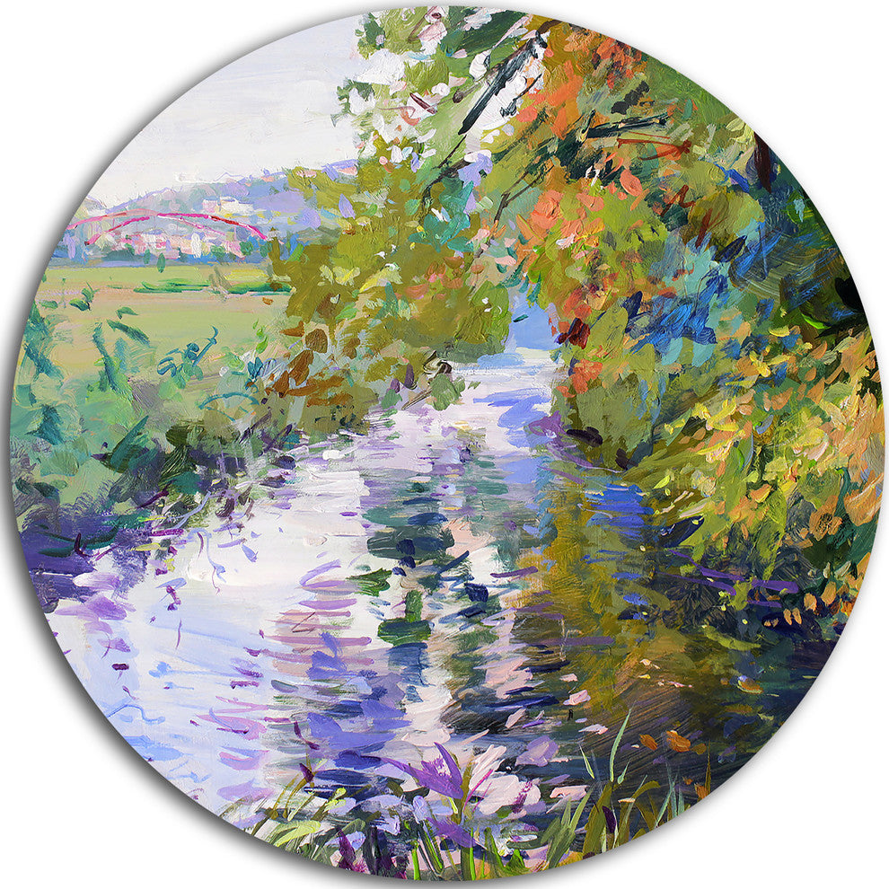 Fall In Amazing Colors, Landscape Painting Disc Metal Wall Art, 36"