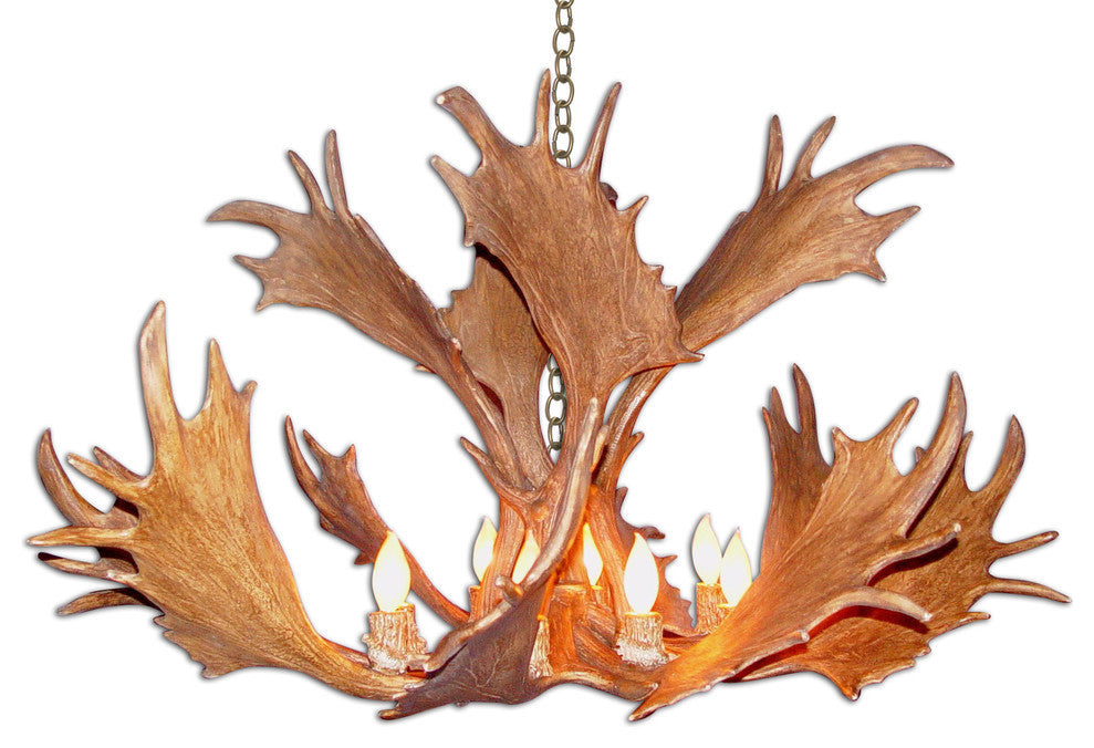 Real Antler Large Fallow Deer Chandelier (36-40''"D x 22-24"H), 12 Light Sockets, 6 Feet of rustic bronze chain. Handmade in North America using top quality naturally shed real antlers. Sockets are made to resemble real antler, each socket rated up to 60 Watts. Comes balanced and ready to hang. Frosted Bent Tip Candelabra Bulbs included. Certified in U.S & Canada (CSA listed to comply with UL 1598)