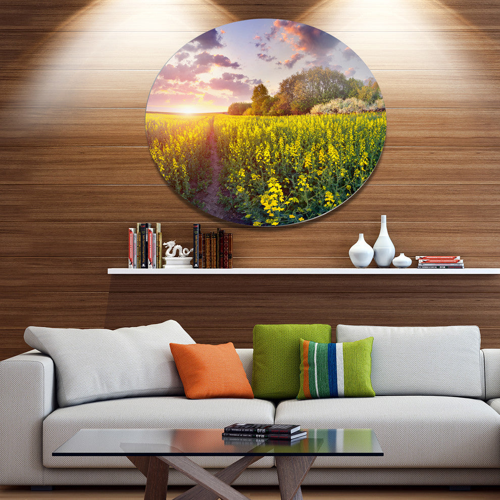 Fantastic Yellow Field At Sunset, Landscape Art Round Wall Art, 23"