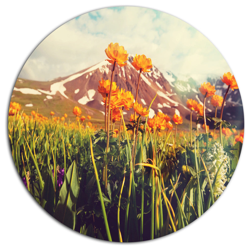 Fantastic Yellow Flowers In Meadow, Flower Disc Metal Wall Art, 36"