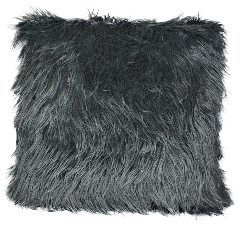 Faux Fur Grey Mongolian Sheepskin Decorative Throw Pillow, 19"x19"