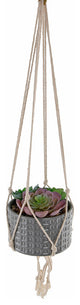 Faux Succulents Garden Macrame Grey Hanging Ceramic Planter, 4.5"