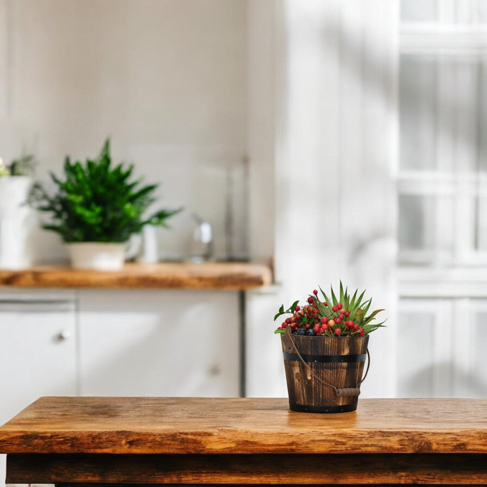 Felicity Rustic Round Wood 6.75 Inch Bucket Planter