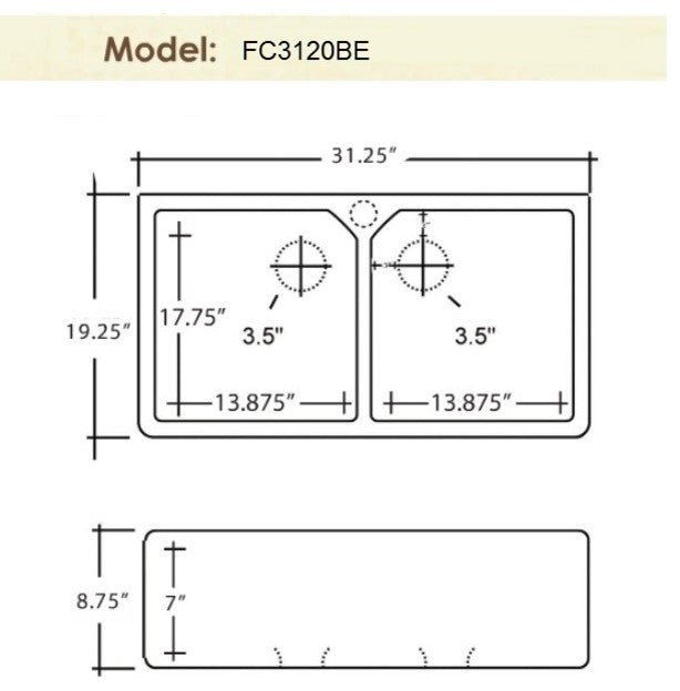 Fine Fixtures Fireclay Collection is hand crafted using original slip casting techniques that were first refined over hundred years ago. Developed to meet the durability and aesthetic requirements of aristocracies working kitchens, it is a testament to fireclays unique properties that has made it the only material to consider manufacturing beautiful ceramic kitchen sinks from when requiring durable elegance.Modern day classical kitchen design has seen the original butler design evolve to accommodate the requirements of modern day life. Two generously sized separate bowls allow for independent washing and rinsing, whilst the glazed fireclay design accurately pays homage to the butler family lineage.Inner dimensions 13 7/8" (per bowl) x 17 3/4" x 7" Outer dimensions 31" x 19 1/2" x 8 1/2"